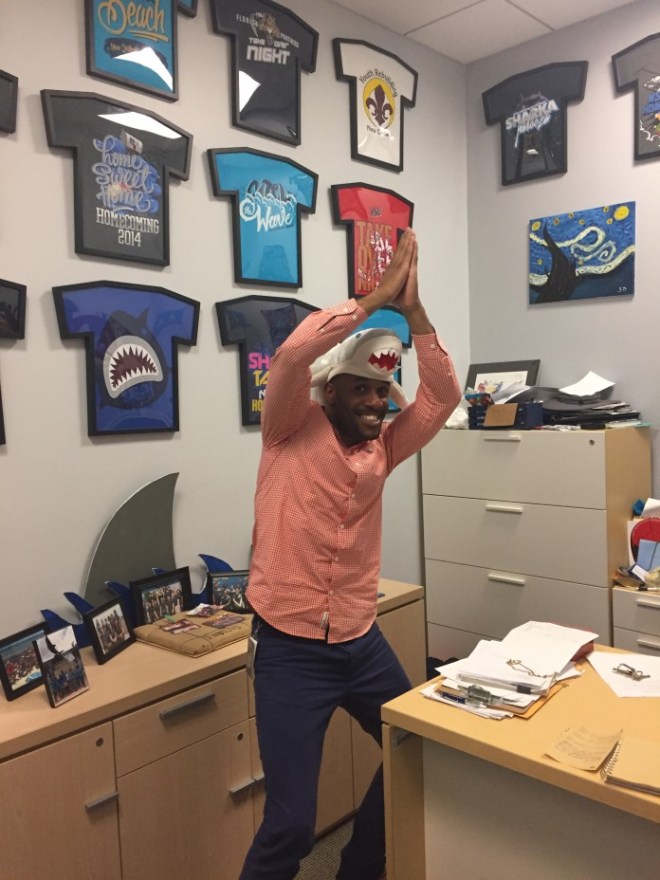 You’ve probably seen his name in your inbox, telling you about the next involvement opportunity on campus. Or maybe you’ve seen him in person dancing at Sharkapalooza or running in between events, always with a smile on his face. Shannon Booker, assistant director of Campus Life and Student Engagement, has garnered a reputation for being the upbeat go-getter we all know.