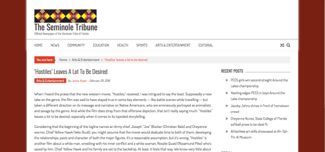 This is a review that Jenna Kopec wrote for the Seminole Tribune on Feb. 28, 2018. To read the full article, click here.
